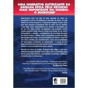 Uma narrativa eletrizante da batalha épica pelo recurso indispensável à vida moderna – o microchip Nos dias de hoje, o poder reside em um pequeno componente eletrônico feito à base de silício: o microchip. Em A guerra dos chips, o especialista em história econômica Chris Miller conta a fascinante história dessa tecnologia crucial para diversos setores, incluindo a indústria militar. O livro traça sua descoberta, passando por seu papel fundamental na Guerra Fria, até todos os demais conflitos que se seguiram e que culminaram na disputa atual entre Estados Unidos e China pelo domínio da tecnologia. A guerra dos chips é um verdadeiro thriller de não ficção, que combina espionagem industrial, ameaças entre nações e manipulação do mercado financeiro, além de explicar os motivos pelos quais a batalha pelo controle da fabricação de chips pode ocasionar um conflito bélico de proporções jamais vistas.