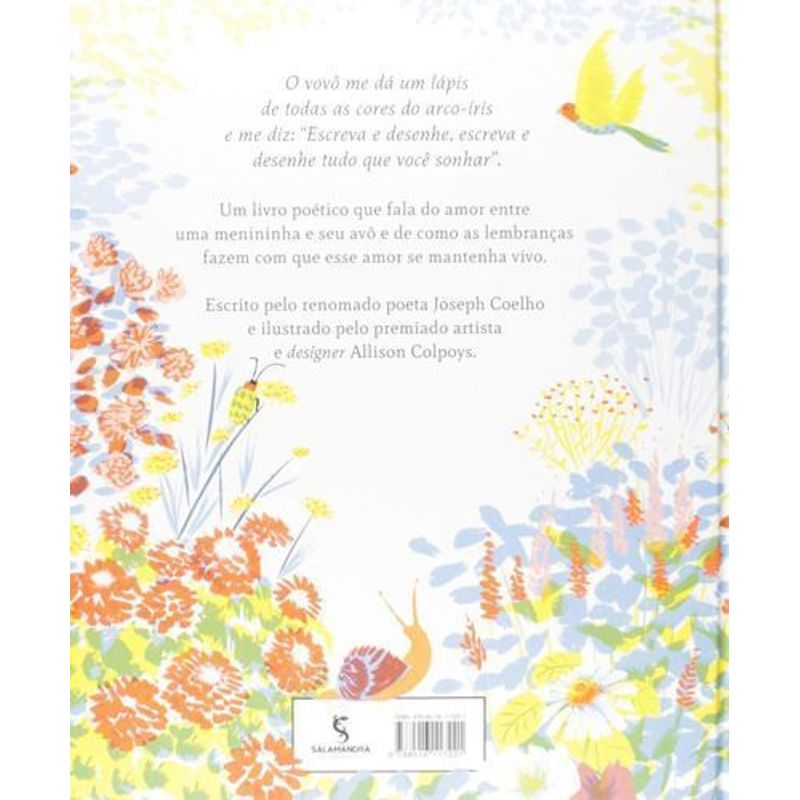 O vovô me dá um lápis de todas as cores do arco-íris e me diz: “Escreva e desenha, escreva e desenhe tudo que você sonhar”.