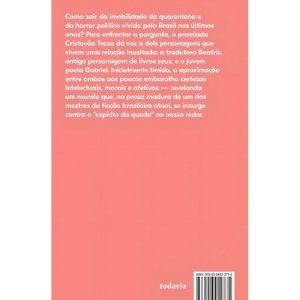 Como sair da imobilidade da quarentena e do horror político vivido nos últimos anos? Para enfrentar a pergunta, Cristovão Tezza dá voz a dois personagens que vivem uma relação inusitada: a tradutora Beatriz, antiga personagem de seus livros, e o jovem poeta Gabriel. Inicialmente tímida, a aproximação entre ambos aos poucos embaralha certezas intelectuais, morais e afetivas — revelando um mundo que se insurge contra o “espírito da queda” ao nosso redor.