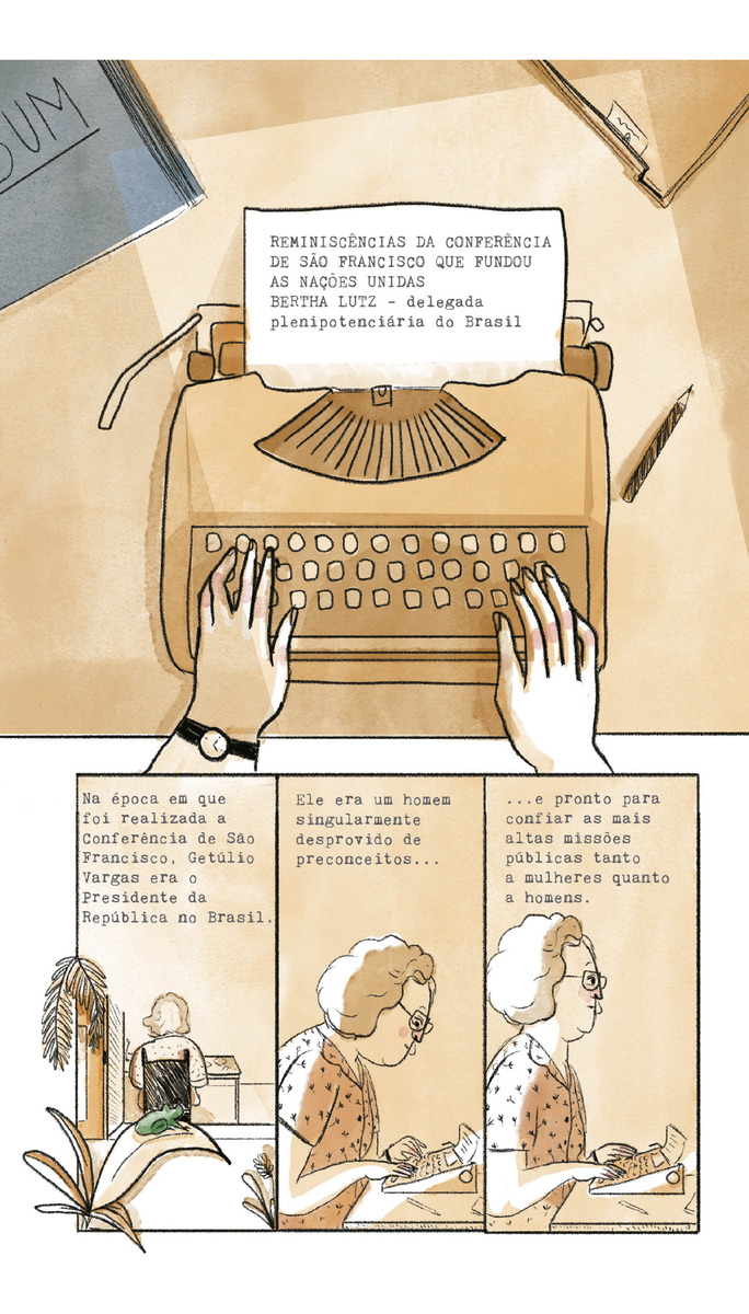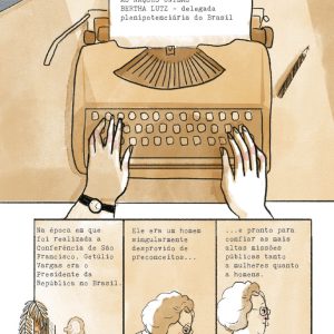 Cientista, feminista, política, militante sufragista, Bertha Lutz (1894-1976) foi uma das poucas mulheres a participar da elaboração da Carta da ONU. O documento criado em 1945 por representantes de 50 países tinha um objetivo ambicioso: selar um pacto de paz global e estabelecer uma organização para promover a cooperação internacional, após um período de duas guerras mundiais. Em um evento dominado por homens brancos, a brasileira liderou a luta para que os direitos das mulheres estivessem contemplados na carta. Em Bertha Lutz e a Carta da ONU, Angélica Kalil e Mariamma Fonseca partem das memórias da ativista brasileira para contar, em quadrinhos, a saga de Bertha na Conferência de São Francisco, onde a carta foi criada. Entre chás e tensas reuniões, a brasileira não se intimidou com a resistência de homens e mulheres ao tema e conseguiu pautar uma discussão fundamental no debate: a igualdade de gênero, garantindo que o documento citasse explicitamente “a igualdade de direitos de homens e mulheres”, entre outras questões. Baseado em um texto de memórias da própria Bertha, o livro traz ainda as biografias das outras 14 mulheres que participaram do evento, além de fotos da época e outros documentos que serviram de referência para a criação da HQ. Consultora do projeto, a historiadora Teresa Novaes, professora da Universidade de Brasília, assina um texto sobre o contexto histórico em que se deu a criação da Carta da ONU e o surgimento das Nações Unidas. O projeto contou ainda com a mentoria da quadrinista Ana Luiza Koehler, autora de Beco do Rosário (Veneta, 2020). Uma história em quadrinhos que recria os bastidores de um dos mais importantes fatos políticos mundiais do século XX e um marco na luta das mulheres por direitos iguais. E que faz um retrato vívido do período do pós-guerra, nos traços delicados de Amma e nas cores sóbrias de Faw Carvalho. Bertha Lutz e a Carta da ONU é o primeiro lançamento do Outra história|Oh!, selo infantojuvenil da editora Veneta. Contemplado pelo ProAc , Programa de Ação Cultural do Governo do Estado de São Paulo, em 2020.