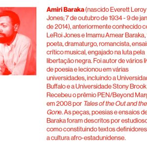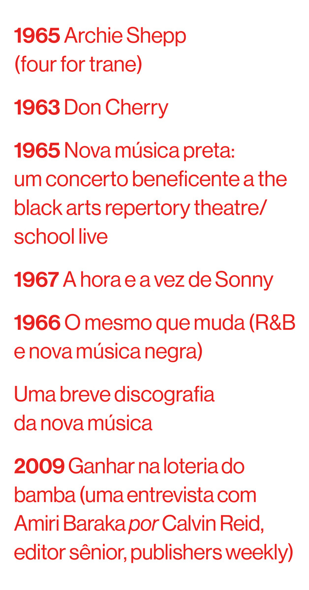 A maioria dos críticos de jazz até agora são americanos brancos, enquanto os principais músicos não” Black Music é um dos exercícios mais radicais e selvagens de crítica musical que já foi posto em prática. Nestes ensaios, resenhas, entrevistas, encartes, crônicas e impressões pessoais publicados entre 1959 e 1967, Amiri Baraka (LeRoi Jones) retrata a florescente cena do free jazz, um movimento que envolveu o aprofundamento das inovações sonoras do bebop e a recuperação do jazz como expressão autêntica da cultura afro-estadunidense em uma época em que seu sucesso comercial a tornava um gênero padronizado e palatável para a amérikkka branca.Figura central e unificadora do movimento beat nos anos 50 e Black Power nas décadas seguintes, Baraka lança mão de uma linguagem elétrica e furiosa que reflete a liberdade de improvisação do free jazz para deixar claro que essa música só pode ser compreendida como parte de um conjunto de experiências, que ao longo do século XX, moldaram uma nova consciência do que significava ser negro nos Estados Unidos. E é por isso que os seus intérpretes, entre os quais se destacam John Coltrane, Ornette Coleman, Archie Shepp, Sun Ra, Thelonious Monk, Albert Ayler, Pharoah Sanders, Sonny Rollins, Don Cherry, Wayne Shorter e Cecil Taylor, devem ser considerados, além de grandes músicos: “intelectuais ou místicos, ou ambos”.Baraka escreve com a paixão e o lirismo que só podem vir de um crítico de jazz que investe intransigentemente nas dimensões sociais e estéticas da música.WBGO (Rádio Pública de Newark, Nova Jersey)Jones aprendeu – e isso tem sido muito raro na crítica de jazz – a escrever sobre música como artista.Nat Hentoff (historiador e crítico musical estadunidense)