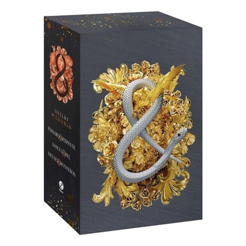 Neste box especial, confira todos os livros da trilogia Pássaro e Serpente, da autora best-seller do New York Times Shelby Mahurin. Perfeita para fãs de Sarah J. Maas, conheça Louise Le Blanc e Reid Diggory, que, unidos por um amor proibido, embarcarão numa jornada eletrizante em meio a perseguições, perigos e sede de vingança. Em Pássaro e serpente, um encontro improvável entre uma bruxa e um caçador de bruxas dá início a um desejo inesperado que une bruxaria, perigos e um amor proibido. Em Sangue e mel, o segundo volume da trilogia, as apostas estão mais altas. E as bruxas, com sede de vingança. Após os incidentes no final explosivo do primeiro volume, Lou e Reid precisarão recorrer a aliados improváveis para sobreviver. Em Deuses e monstros, a conclusão arrebatadora da trilogia, Lou e seus aliados enfrentarão, literalmente, deuses e monstros para que todos com quem se importam possam se manter a salvo. Em meio a dificuldades e um desfecho sombrio iminente, Lou e Reid precisarão enfrentar seus demônios e, finalmente, parar de fugir.