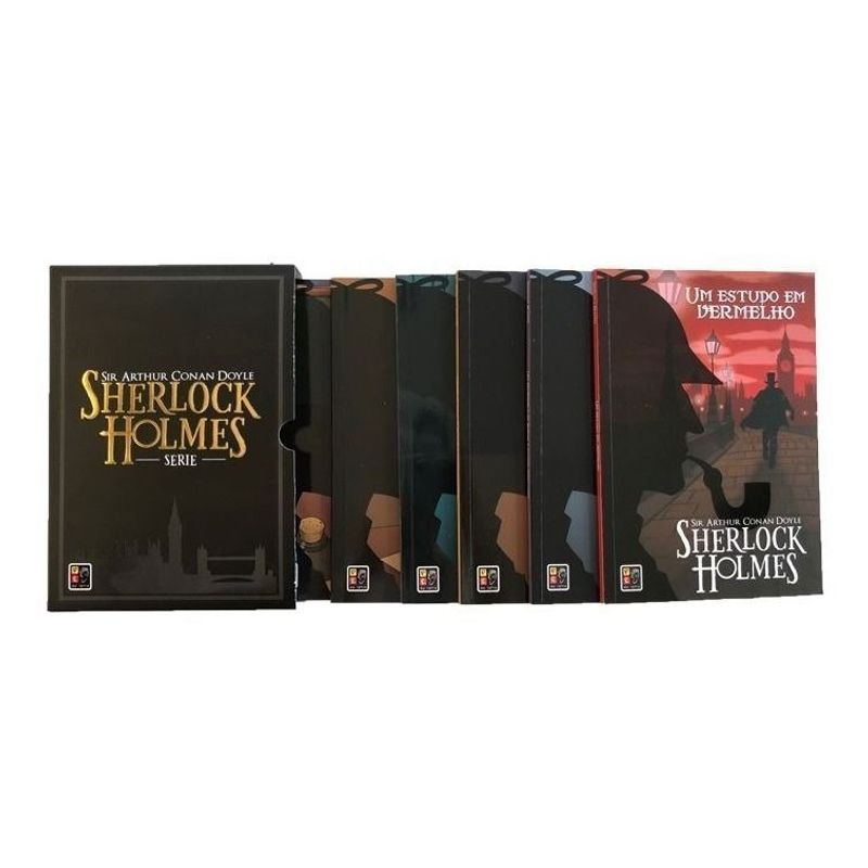 Nesse combo você encontrará 6 livros capa brochura da série sherlock holmes (um estudo em vermelho, um escândalo na boêmia e outras aventuras, o roubo da coroa de berilos e outras aventuras, o cão dos baskervilles, a liga dos cabeças vermelhas e outras aventuras e o signo dos quatro).