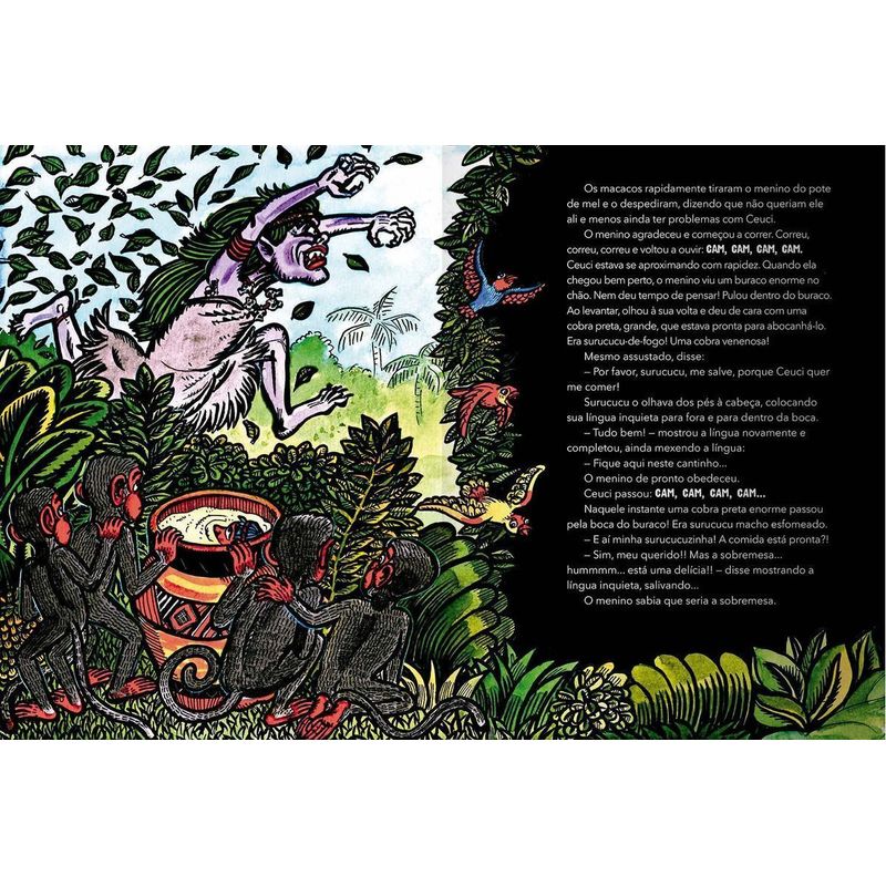 CEUCI, A MAE DO PRANTO e uma lenda do povo Anambe, natural do norte do Para, narrada agora pelo escritor Cristiano Wapichana, Nela, um curumim ( menino, na lingua tupi) sai para pescar na floresta que comia tudo o que via pela frente. Ate gente! Corajoso, ele se julgava mais esperto do que todos. No momento, mal sua jornada comecou e o pequeno curumim avistou Ceuci sobre a sua canoa. Uma senhora gulosa, a Mae do Pranto, devorava peixes sem parar e, quando mais comia, mais fome tinha. Nao tardou para ela descobrir ganha um grande suspense, com a perseguicao de Ceuci atras do esperto curumim. Essa aventura na floresta e cheia de armadilhas que levarao nosso personagem a muitas descobertas com um final inesperado e emocionante!
