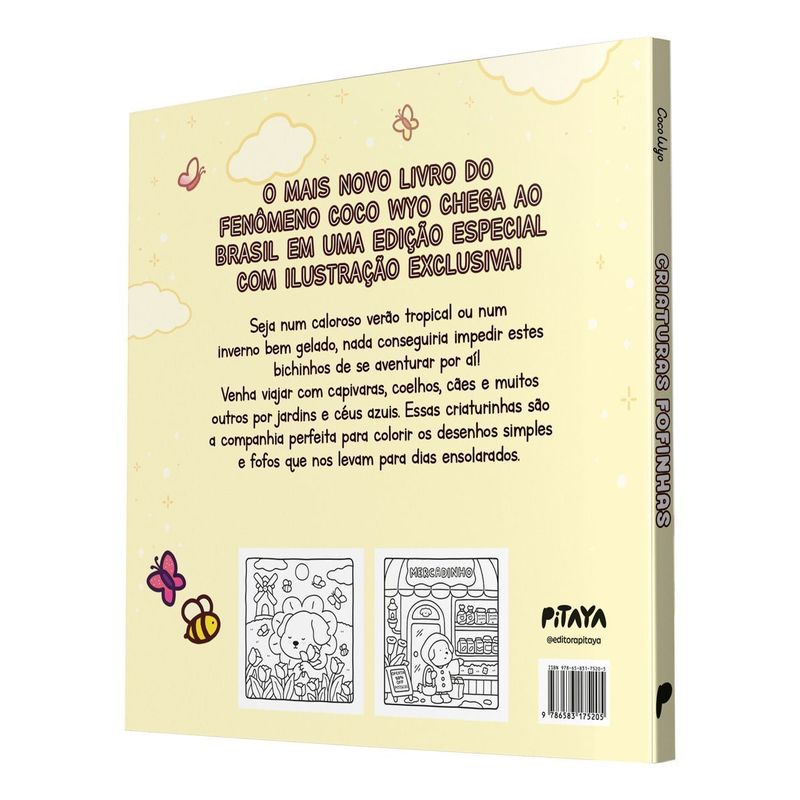 O mais novo livro do fenômeno Coco Wyo chega ao Brasil em uma edição especial com ilustração exclusiva!Seja num caloroso verão tropical ou num inverno bem gelado, nada conseguiria impedir estes bichinhos de se aventurar por aí!Venha viajar com capivaras, coelhos, cães e muitos outros por jardins e céus azuis. Essas criaturinhas são a companhia perfeita para colorir os desenhos simples e fofos que nos levam para dias ensolarados.Neste livro, você vai encontrar:Mais de 40 desenhos feitos a mão, prontos para serem coloridos;Uma ilustração exclusiva, feita unicamente para a edição brasileira;Design ideal para uma experiência agradável e reconfortante;Páginas isoladas para evitar manchas de pintura.