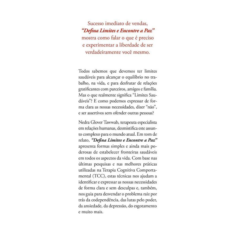 “Defina Limites e Encontre a Paz – um guia para encontrar a si mesmo” é o lançamento de julho da nVersos Editora. Fale o que você precisa e experimente a liberdade de ser verdadeiramente você mesmo. Todos sabemos que devemos ter limites saudáveis para alcançar o equilíbrio no trabalho, na vida, lidar com pessoas tóxicas, desfrutar de relações gratificantes com parceiros, amigos e família. Mas o que significa ter limites saudáveis – e como podemos expressar de forma clara as nossas necessidades, dizer não e sermos assertivos sem ofender outras pessoas? Neste livro, Nedra Glover Tawwab, terapeuta especializada em relacionamentos,nos mostra como estabelecer limites e agir em diversas situações que ferem a nossa saúde mental. A autora aborda temas como: limites físicos, limites emocionais, cultura do cancelamento, ghosting, gaslighting, tipos de apego e várias outras questões que nos afetam emocionalmente no convívio em sociedade.