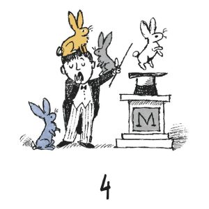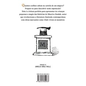 Quantos coelhos cabem na cartola de um mágico? Descubra neste espetáculo criado pelo premiado Maurice Sendak, autor de Onde vivem os monstros. Prepare-se para ficar maravilhado… Encantado… E completamente hipnotizado por este espetáculo de mágica! Nesta obra póstuma de Maurice Sendak, um pequeno mágico faz seu show: com um simples aceno de varinha, voilà! Surge um coelho de sua cartola. Depois outro, e mais outro, e mais outro… E, quanto mais coelhos aparecem, mais as coisas saem do controle. No quarto coelho, o mágico boceja. No sexto, começa a perder a paciência… E, no nono, ele está completamente fora de si, enquanto os coelhos travessos pulam por toda parte. É preciso dar limites a essa coelhada! Então o mágico toma uma atitude: um a um, os coelhos voltam de onde vieram, dando aos leitores a chance de contar os números aumentando e diminuindo até que o espetáculo termine. Com ilustrações dinâmicas, coelhos brincalhões e expressões hilárias, o autor cria uma narrativa cativante, capaz de trazer magia e humor aos números. Essa é a introdução perfeita ao inesquecível mundo de Maurice Sendak, o artista que mudou a história da literatura ilustrada contemporânea. Indicado para leitores a partir de 0 ano.