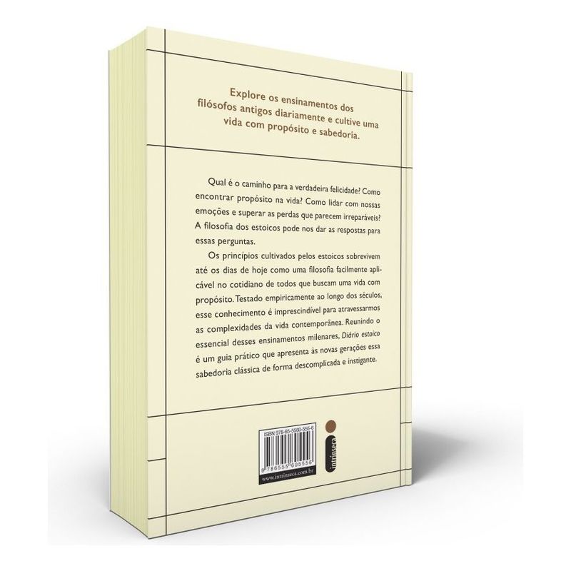 Autor best-seller, Ryan Holiday lança guia acessível para explorarmos a sabedoria estoica em uma jornada de um ano através de passagens essenciais das obras dos principais filósofos Qual é o caminho para a verdadeira felicidade? Como encontrar propósito na vida? Como lidar com nossas emoções e superar perdas irreparáveis? A filosofia dos estoicos pode nos dar as respostas para essas perguntas. Nesta abordagem prática à filosofia estoica, Ryan Holiday e Stephen Hanselman oferecem um guia para cultivarmos, dia após dia, a arte de viver. Ao apresentar uma seleção primorosa de citações de estoicos ilustres como Sêneca, Epicteto e Marco Aurélio, os autores nos instigam a expandir nossa compreensão do mundo e a nos permitir experimentar novas maneiras de agir e pensar — prática fundamental para vivermos melhor, uma vez que, segundo esses filósofos, a maior parte das adversidades que enfrentamos não é provocada pelos acontecimentos em si, mas pela forma como os percebemos e lidamos com eles. As lições desses sábios da Antiguidade disponíveis nesta obra, vão nos ajudar a reavaliar nossas percepções e atitudes, além de nos motivar a desenvolver a força e a resiliência para navegarmos com serenidade pelas imprevisibilidades da vida. Afinal, a instabilidade é inerente à experiência humana, e, neste ponto, a filosofia dos estoicos nos fornece um bastião para nos mantermos firmes diante das intempéries. Diário estoico traz uma meditação para cada dia do ano acompanhada por comentários perspicazes que contextualizam e elucidam os ensinamentos dos filósofos, além de exercícios e provocações que vão incentivar os leitores a modificar sua forma de pensar e agir. Também conta com um glossário bastante elucidativo de termos gregos e uma lista de leituras recomendadas para quem pretende se aprofundar no tema. Um guia acessível que apresenta às novas gerações a sabedoria milenar dos estoicos de forma descomplicada e instigante.