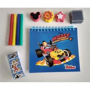 Divirta-se com esta caixa cheia de atividades e desenhos para colorir do Mickey Mouse. Inclui 3 carrinhos; cartela de adesivos; 1 livro de atividades; 1 almofada de carimbo e 4 marcadores coloridos.