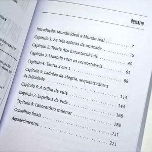 No mundo ideal, as pessoas amam umas as outras, perdoam ate 70 vezes 7 e nao julgam para nao serem julgadas. Enquanto isso, no mundo real, os amigos proximos podem invejar, familiares espalham fofocas e somos abandonados por quem menos esperamos que faca isso. O mundo real mostra que o verdadeiro desafio esta em administrar o outro. Voce precisa de pessoas para ser feliz. Invista nelas, aprenda a enxergar o que ha de melhor em cada uma e aprenda aqui como nao esperar algo em troca e mesmo assim encontrar satisfacao e felicidade nas suas relacoes. Entender o outro e o primeiro passo para grandes amizades e grandes negocios.