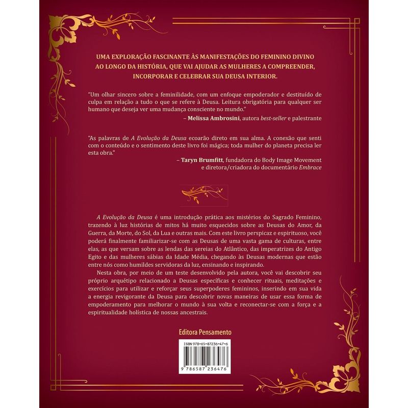 A Evolução da Deusa é uma introdução prática aos mistérios do Sagrado Feminino, trazendo à luz histórias de mitos há muito esquecidos sobre as Deusas do Amor, da Guerra, da Morte, do Sol, da Lua e outras mais. Com este livro perspicaz e espirituoso, você poderá finalmente familiarizar-se com as Deusas de uma vasta gama de culturas, entre elas, as que versam sobre as lendas das sereias do Atlântico, das imperatrizes do Antigo Egito e das mulheres sábias da Idade Média, chegando às Deusas modernas que estão entre nós como humildes servidoras da luz, ensinando e inspirando. Descubra aqui seu próprio arquétipo relacionado a Deusas específicas e conheça rituais, meditações e exercícios para utilizar e reforçar seus superpoderes femininos.
