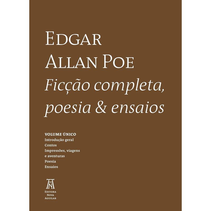 A Editora Nova Aguilar, reúne a obra completa de Edgar Allan Poe em uma coletânea, cumprindo com a missão de levar o melhor da literatura universal ao alcance do público leitor. “Ficção completa, poesia & ensaios”, em um único volume, apresenta os escritos do contista, poeta e crítico literário norte-americano Edgar Allan Poe, famoso mundialmente por suas histórias de mistério e de terror.