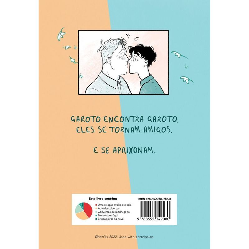 O primeiro volume das adoradas HQs que inspiraram a série original da Netflix! Agora em edição brochura com capa da série e miolo em preto e branco. Charlie Spring e Nick Nelson não têm quase nada em comum. Charlie é um aluno dedicado e bastante inseguro por conta do bullying que sofre no colégio desde que se assumiu gay. Já Nick é superpopular, especialmente querido por ser um ótimo jogador de rúgbi. Quando os dois passam a sentar um ao lado do outro toda manhã, uma amizade intensa se desenvolve, e eles ficam cada vez mais próximos. Charlie logo começa a se sentir diferente a respeito do novo amigo, apesar de saber que se apaixonar por um garoto hétero só vai gerar frustrações. Mas o próprio Nick está em dúvida sobre o que sente — e talvez os garotos estejam prestes a descobrir que, quando menos se espera, o amor pode funcionar das formas mais incríveis e surpreendentes. Essa edição contém: • Brochura sem orelhas • Miolo em preto e branco • Fichas sobre cada personagem • Uma prévia do próximo volume