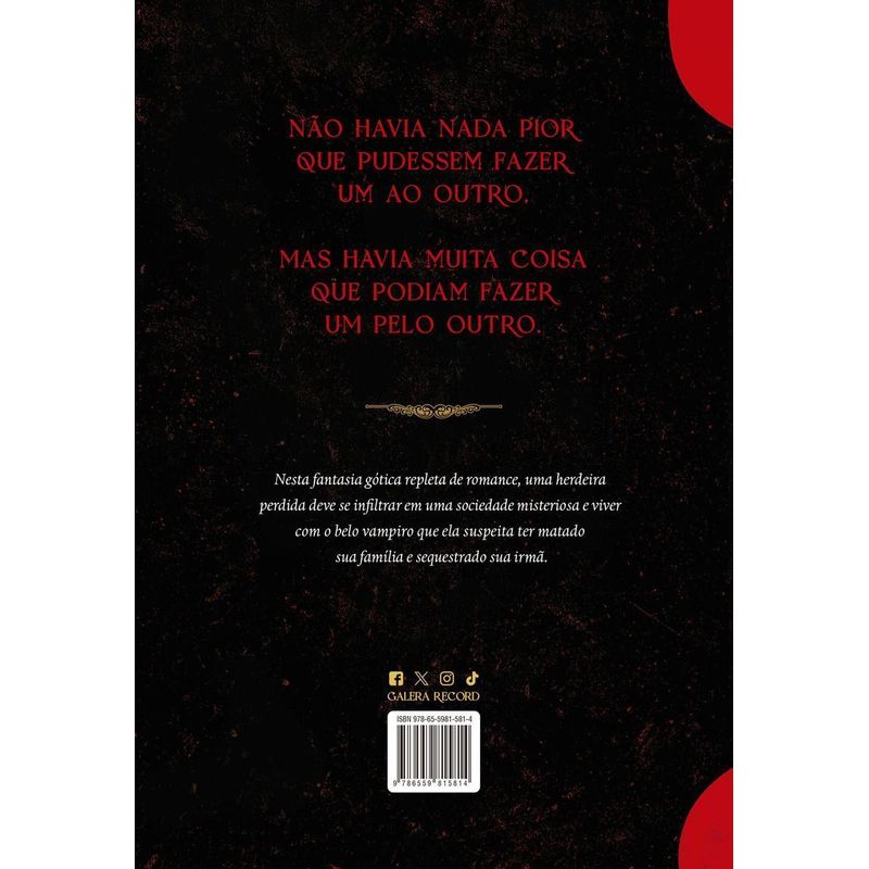 Uma herdeira perdida deve se infiltrar numa sociedade misteriosa e viver com o vampiro que ela suspeita ter matado sua família e sequestrado sua irmã. Inimigo imortal é uma fantasia best-seller gótica repleta de romance. Kidan Adane é uma órfã que cresceu longe da sociedade arcana em que nasceu, na qual linhagens humanas adquirem poderes ao se tornarem parceiras de vampiros. Mas, quando a irmã de Kidan, June, desaparece, a garota se convence de que o responsável foi um vampiro, justamente aquele que está vinculado a sua própria família: o cruel, mas sedutor, Susenyos Sagad. Para encontrar June, Kidan precisa se infiltrar na elite da Universidade Uxlay, onde humanos e vampiros são enviados para estudar juntos e garantir a coexistência pacífica entre as espécies, assim como herdar o legado das famílias de que fazem parte. Porém, sendo a última Adane que sobrou, para permanecer na universidade, Kidan precisa morar na casa que sua família deixou para trás há tantos anos. Dividir o espaço com Susenyos realmente não fazia parte dos planos de Kidan, e muito menos dos dele… O vampiro fará de tudo para tirá-la da casa e conseguir herdar ele mesmo o direito à propriedade. Mas ela não desistirá assim tão fácil, ainda que Susenyos desperte o que há de pior nela, e que a casa alimente seus piores pesadelos. Cada vez mais envolvida no implacável submundo vampiresco, Kidan colocará em risco a própria vida — além da sua humanidade — para encontrar a irmã, que parece estar no centro de uma ameaça centenária. Para salvá-la, Kidan precisará se libertar dos horrores das próprias ações ou se envolver em um amor sombrio — um que exigirá sangue. Perfeito para fãs de: Inimigos que se apaixonam Romantasia Vampiros Casas sencientes Personagens de caráter duvidoso Dark Academia “Totalmente irresistível. Inimigo imortal pega as melhores partes do folclore vampírico e apresenta uma inimizade imortal e violenta. Tigest Girma conduz a fantasia de moral cinza exatamente para onde ela deve ir, e você não conseguirá piscar.” – Chloe Gong, autora de Prazeres Violentos, best-seller nº 1 do New York Times. “Uma história deliciosamente sombria repleta de personagens de moral cinza pelos quais é impossível não torcer.” – Gabi Burton, autora do best-seller O canto da sereia. “Uma estreia feroz de uma nova voz inovadora.” – Kamilah Cole, autora de Fogo neles “Um retorno ao envolvente gênero dos vampiros que se deleita com prazeres violentos e sangrentos.” – Kirkus Reviews “A autora estreante, Tigest Girma, atrai os leitores com a promessa de romances sombrios e perigosos, e então os enreda com personagens de moral cinza e bem desenvolvidos.” – Publishers Weekly