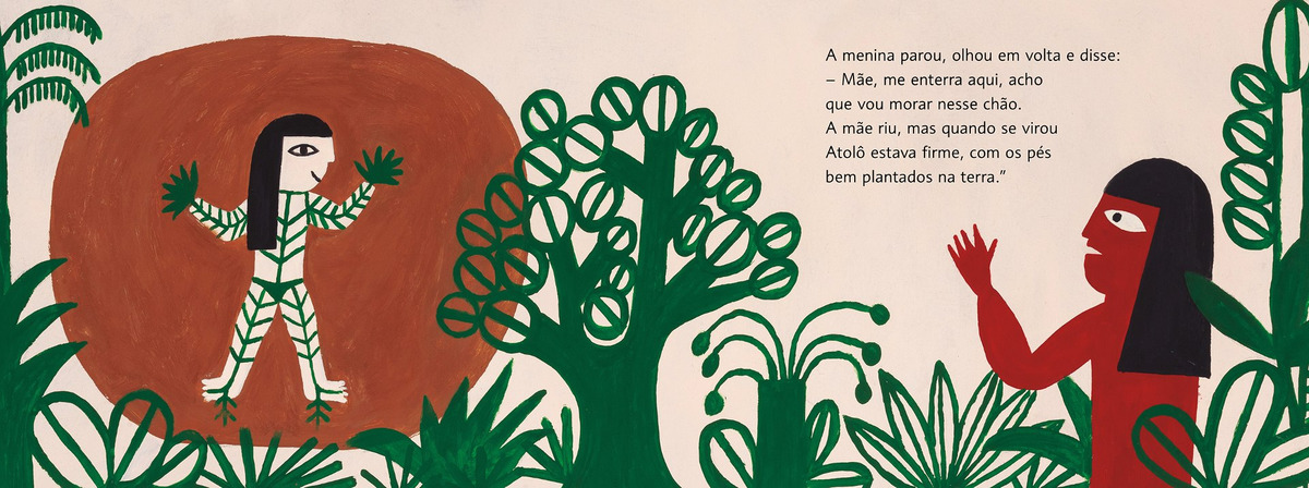 Menina mandioca é um livro infantil que brotou da vivência da autora em terras indígenas durante a sua infância. Ele nasceu do desejo da autora de ver crianças e adultos sonhando um pouco em ser planta, pedra, ser rio. O mito indígena de origem do alimento essencial para a sobrevivência dos povos originários nos faz sonhar e vivenciar outras existências, de sentir a terra e criar raízes com a nossa ancestralidade.
