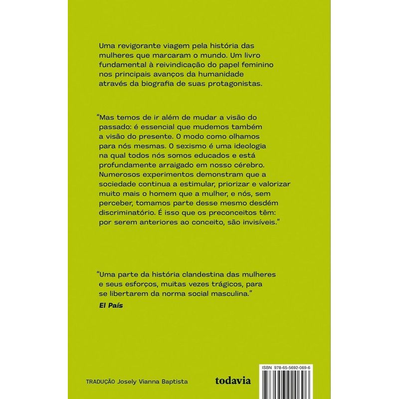 Um livro fundamental à reivindicação do papel feminino nos principais avanços da humanidade através da biografia de suas protagonistas. Grandes e célebres figuras estão presentes, de Agatha Christie a Simone de Beauvoir. Mas não só. Mulheres menos conhecidas também são retratadas, como Mary Anning, primeira paleontóloga da História, e Juana Azurduy, que liderou exércitos contra os espanhóis.