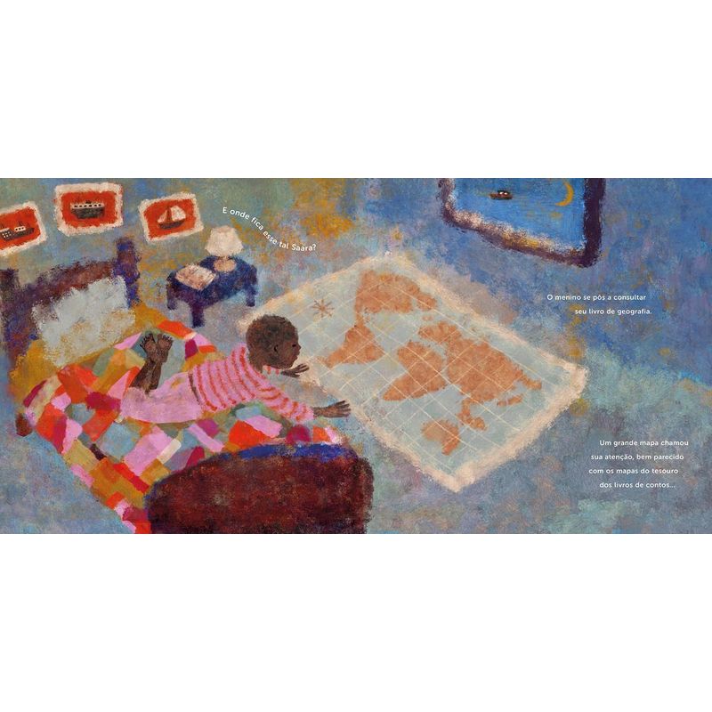 Uma narrativa que atravessa oceanos, mapas e sonhos, revelando o poder das histórias que conectam mundos. Uma notícia inesperada trazida pelo vento desperta a curiosidade de um menino: uma nuvem de areia do deserto do Saara está a caminho do Brasil. Intrigado com o fenômeno, ele se pergunta como algo tão distante pode cruzar o Atlântico e chegar até sua praia. Movido pela imaginação e pela vontade de entender esse mistério, o menino embarca em uma jornada de descobertas. Mapas, livros e pesquisas se tornam portais para explorar o continente africano, suas paisagens, idiomas e histórias. Cada nova informação revela conexões inesperadas e alimenta sua curiosidade sobre um lugar repleto de mistérios e culturas. Enquanto espera a chegada da nuvem, realidade e sonho se entrelaçam. O vento transforma-se em uma ponte entre mundos, levando o menino a um encontro poético com o desconhecido e a magia das descobertas. Indicado para leitores a partir de 4 anos.