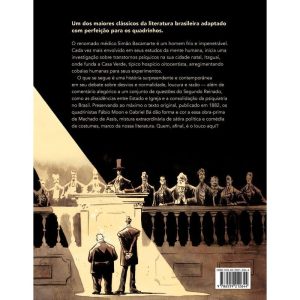 Machado de Assis e um dos maiores clássicos da literatura brasileira adaptados com perfeição para os quadrinhos. Livro vencedor do Jabuti de melhor HQ. O renomado médico Simão Bacamarte é um homem frio e impenetrável. Cada vez mais envolvido em seus estudos da mente humana, inicia uma investigação sobre transtornos psíquicos na sua cidade natal, Itaguaí, onde funda a Casa Verde, típico hospício oitocentista, arregimentando cobaias humanas para seus experimentos. O que se segue é uma história surpreendente e contemporânea em seu debate sobre desvios e normalidade, loucura e razão — além de comentário alegórico a um conjunto de questões do Segundo Reinado, como as dissidências entre Estado e Igreja e a consolidação da psiquiatria no Brasil. Preservando ao máximo o texto original, publicado em 1882, os quadrinistas Fábio Moon e Gabriel Bá dão forma e cor a essa obra-prima de Machado de Assis, mistura extraordinária de sátira política e comédia de costumes, marco da nossa literatura. Quem, afinal, é o louco aqui?