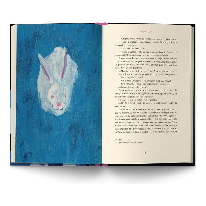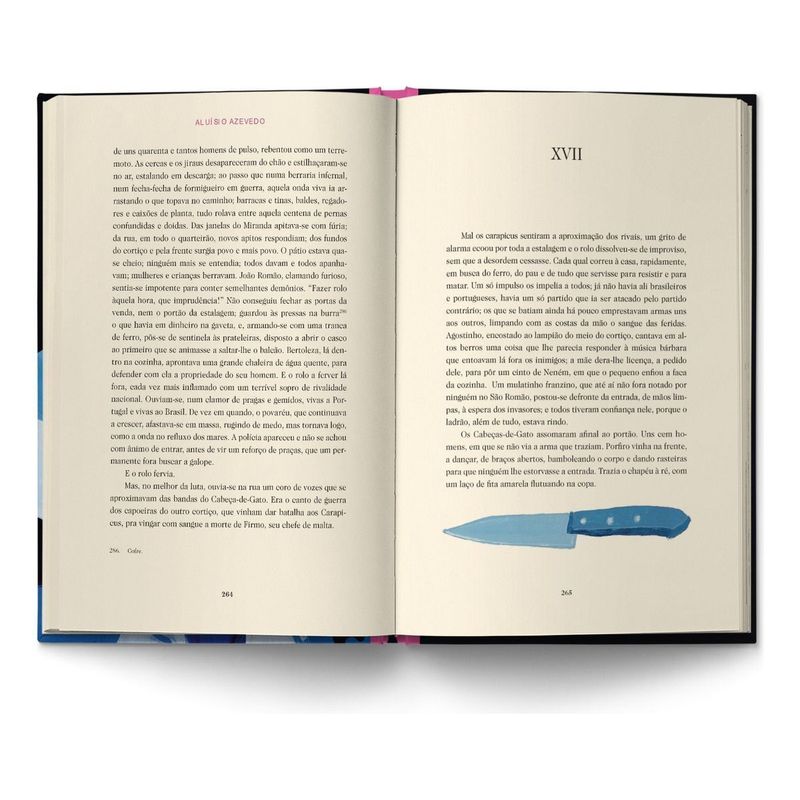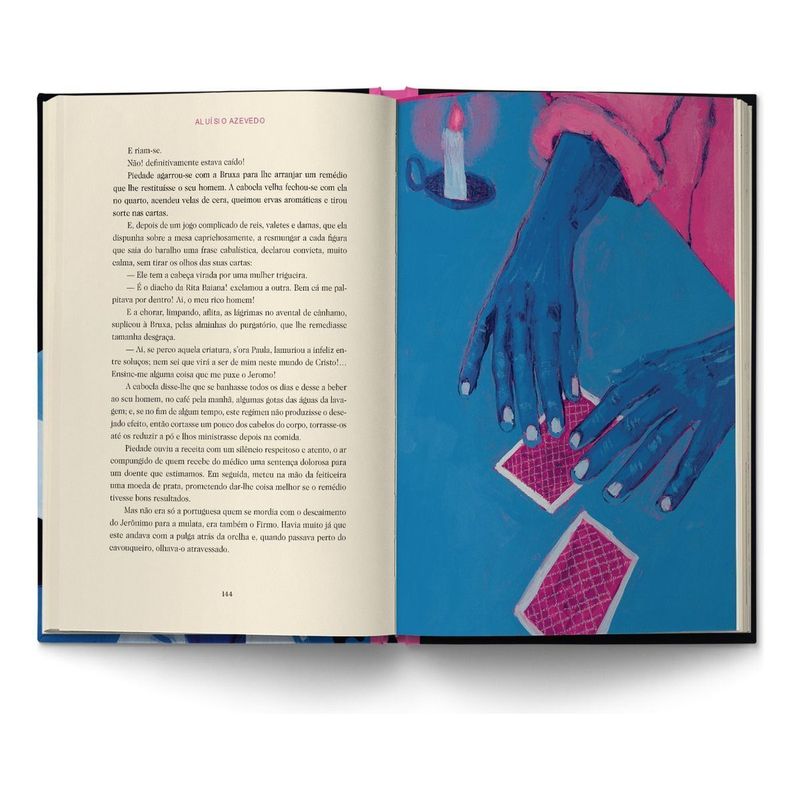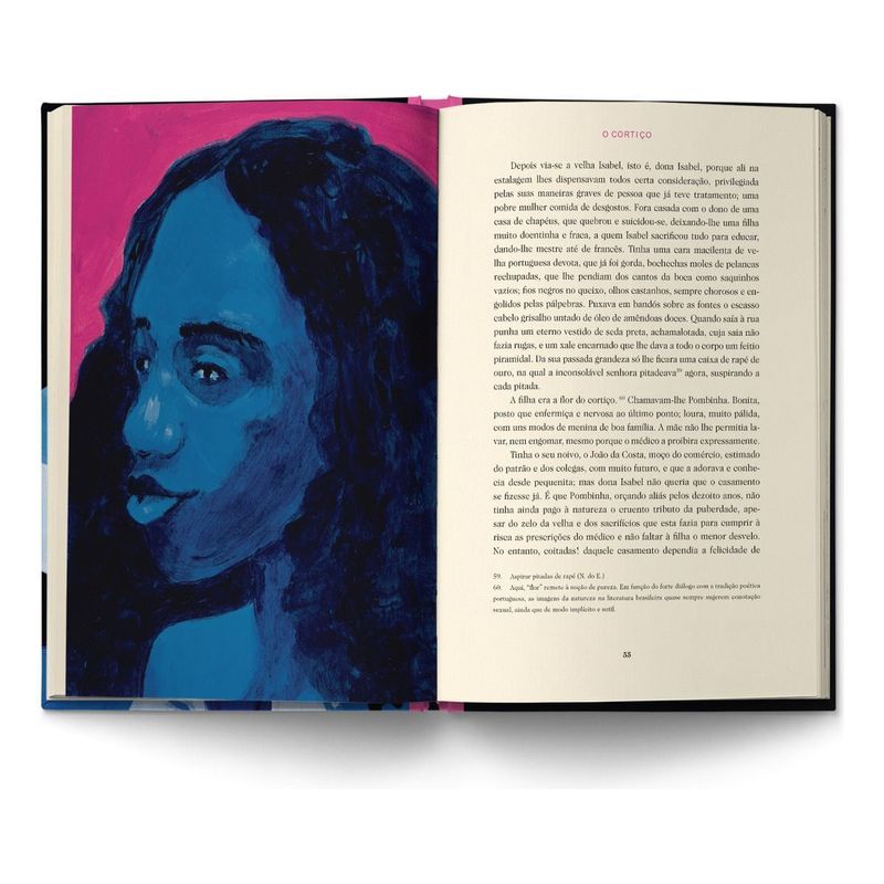 Um dos mais importantes romances brasileiros do século 19, O cortiço expõe a formação de uma elite burguesa por meio de personagens marcantes. A edição da Antofágica conta artes inéditas da artista Kika Carvalho, apresentação de Alê Garcia e posfácios Luiz Antonio Simas, José Falero e Sílvio Oliveira. Depois de vir para Brasil com o intuito de enriquecer e ascender socialmente, o português João Romão assume a propriedade de um cortiço no Rio de Janeiro, um ambiente inóspito com ar úmido, quente e solo lodoso. Além do conjunto de moradias, ele também é dono de uma pedreira e uma venda, e todo o seu plano enriquecimento passa pela exploração do trabalho e do consumo dos moradores do cortiço. Uma das obras mais conhecidas da literatura nacional, O cortiço se mostra também como uma grande crítica à formação da burguesia no Brasil. Com personagens fortes e muito bem construídos, Aluísio Azevedo mostra uma realidade de formação de riqueza com base em golpes e exploração do trabalho de mão de uma obra pobre, que se sujeitava ao trabalho em troca de uma moradia insalubre – retrato longe de ser superado no Brasil de hoje. Esta edição da Antofágica conta com pinturas inéditas de Kika Carvalho, artista indicada ao Prêmio PIPA em 2021. A apresentação é feita pelo escritor Alê Garcia, e assinam os posfácios o historiador Luiz Antonio Simas, o escritor José Falero e Sílvio Roberto Oliveira, doutor em Letras e professor titular da Universidade do Estado da Bahia. EXTRA: Ao escanear o QR Code da cinta, o leitor tem acesso a duas videoaulas sobre o livro. A primeira aula deve ser vista em um momento anterior à leitura, e a segunda, após a experiência do livro