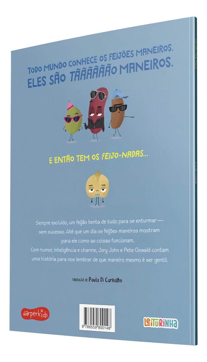 “Todo mundo conhece os feijões maneiros. Eles são tãããão maneeeeiros! E também tem os feijo-nadas… Sempre excluído, um feijão tenta de tudo para se enturmar, mas sem sucesso. Apesar de ter crescido na mesma vagem que os feijões maneiros, ele só não é legal o suficiente. Até que um dia os feijões maneiros mostram para ele como as coisas funcionam. Com humor, inteligência e charme, os autores #1 do New York Times Jory John e Pete Oswald nos lembram que maneiro mesmo é ser gentil. “