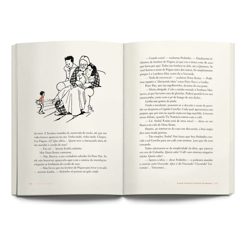 Edição de luxo para um grande clássico de Monteiro Lobato. Em O picapau amarelo a combinação entre realidade e fantasia é tão marcante que adultos e crianças podem se esquecer um pouco do mundo e viver uma aventura dentro dos livros. Nele, todos os personagens do mundo da fantasia resolvem se mudar para o Sítio do Picapau Amarelo e Dona Benta precisa pensar em um plano para ampliar suas propriedades e acolher a todos. Ela compra as terras vizinhas, e para isso conta com a astúcia de Emília e a engenhosidade do Visconde de Sabugosa. Lá vão morar Peter Pan, Chapeuzinho Vermelho, Dom Quixote, Branca de Neve e outras grandes figuras do faz de conta. Monteiro Lobato deu a este livro o nome do espaço em que surgiu a literatura infantil brasileira. Nesta obra, o autor antecipou recursos literários que seriam explorados depois por outros livros, e também pelo cinema, reunindo figuras de diferentes universos e desafiando as regras da ficção em nome da criação de uma obra memorável. Edição em capa dura com as ilustrações originais dos artistas selecionados pelo próprio Lobato, incluindo a clássica guarda com o mapa do mundo da fantasia, de Jean Villin.