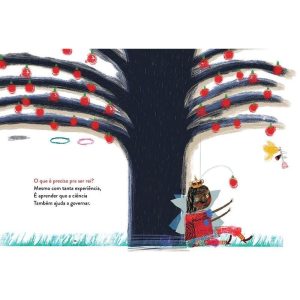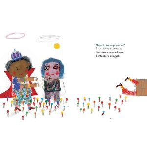 Com um texto cadenciado e repleto de rimas, este livro instiga o leitor a pensar sobre o que exatamente define um rei. Uma herança? Uma coroa? Um castelo? Ou será que é preciso também sabedoria, empatia, compaixão? Essas perguntas, que vão se sobrepondo ao longo da narrativa, vêm acompanhadas de pequenos conselhos sobre os quais podemos refletir, como a importância de saber partilhar ou o valor de ouvir e procurar compreender quem pensa diferente de nós. As ilustrações, carregadas de elementos líricos, dialogam com o texto de uma maneira encantadora e poética. Os detalhes enriquecem a leitura e propiciam várias surpresas visuais que complementam a narrativa. Um livro capaz de encantar leitores de todas as idades.