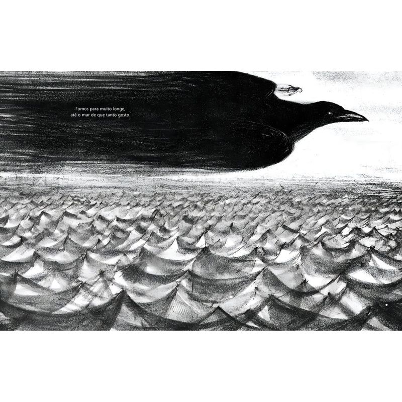Da premiada artista Suzy Lee, vencedora do Hans Christian Andersen, esta narrativa emocionante revela como a imaginação e o fantástico podem ajudar a superar a tristeza e a solidão. Por meio de impressionantes ilustrações feitas com a técnica da litografia, acompanhamos um dia na vida de uma menina que, triste ao ouvir uma briga dos pais, encontra conforto na figura de um pássaro preto que a leva para uma jornada reflexiva. Voando no grande pássaro, a garota atravessa campos, ouve o sussurrar do vento e vai para bem longe… até o mar. Quando retorna ao lar, ela se sente melhor, porque agora guarda um segredo — que é apenas dela e do pássaro. Nesta obra, Suzy Lee parte dos conflitos familiares e da solidão para adentrar um mundo de fantasia — uma fuga necessária para que a protagonista se reconecte consigo mesma. O grande pássaro preto torna-se, de maneira inesperada, seu companheiro de jornada e confidente. Em uma edição caprichada, com acabamento em capa dura, a artista apresenta mais uma história sensível e profunda, unindo força e delicadeza em uma obra que vai conquistar leitores de todas as idades. Indicado para leitores a partir de 6 anos.