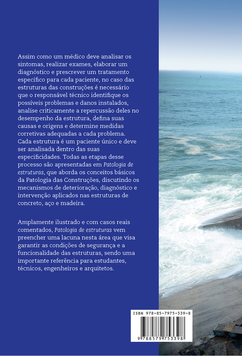 Assim como um médico deve analisar os sintomas, auscultar, elaborar um diagnóstico e prescrever um tratamento para um paciente, no caso das construções é necessário identificar o quanto antes defeitos e desempenho irregular ou insatisfatório de sua estrutura, definir as causas e determinar as medidas corretivas adequadas à sua recuperação. Todas as etapas desse processo são apresentadas em Patologia de estruturas, que aborda os conceitos básicos da Patologia de Construções e apresenta de forma abrangente os mecanismos de deterioração, diagnóstico e intervenção em estruturas de concreto, de aço e de madeira. Amplamente ilustrado e com casos reais comentados, Patologia de estruturas vem preencher uma lacuna nesta área que visa garantir as condições de segurança e a funcionalidade das estruturas, sendo uma importante referência para estudantes, técnicos, engenheiros e arquitetos.