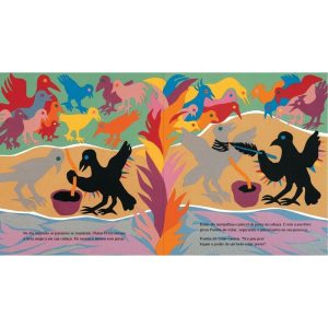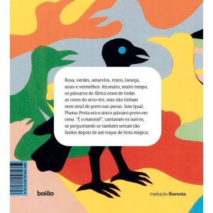 Rosa, verdes, amarelos, roxos, laranja, azuis e vermelhos. Há muito, muito tempo, os pássaros de África eram de todas as cores do arco-íris, mas não tinham nem um sinal de preto nas penas. Sem igual, Pluma-Preta era o único pássaro preto em cena. “É o maioral!”, cantavam os outros, se perguntando se também seriam tão lindos depois de um toque de tinta mágica.