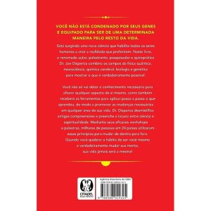 Você não está condenado por seus genes e equipado para ser de uma determinada maneira pelo resto da vida. Está surgindo uma nova ciência que habilita todos os seres humanos a criar a realidade que preferirem. Neste livro, o renomado autor, palestrante, pesquisador e quiroprático Dr. Joe Dispenza combina os campos da física quântica, neurociência, química cerebral, biologia e genética para mostrar o que é verdadeiramente possível. Você não só vai obter o conhecimento necessário para alterar qualquer aspecto de si mesmo, como também receberá as ferramentas para aplicar passo a passo o que aprendeu, de modo a promover as mudanças necessárias em qualquer área de sua vida. Dr. Joe desmistifica antigas compreensões e preenche a lacuna entre ciência e espiritualidade. Quando você quebrar o hábito de ser você mesmo e verdadeiramente mudar sua mente, sua vida jamais será a mesma!