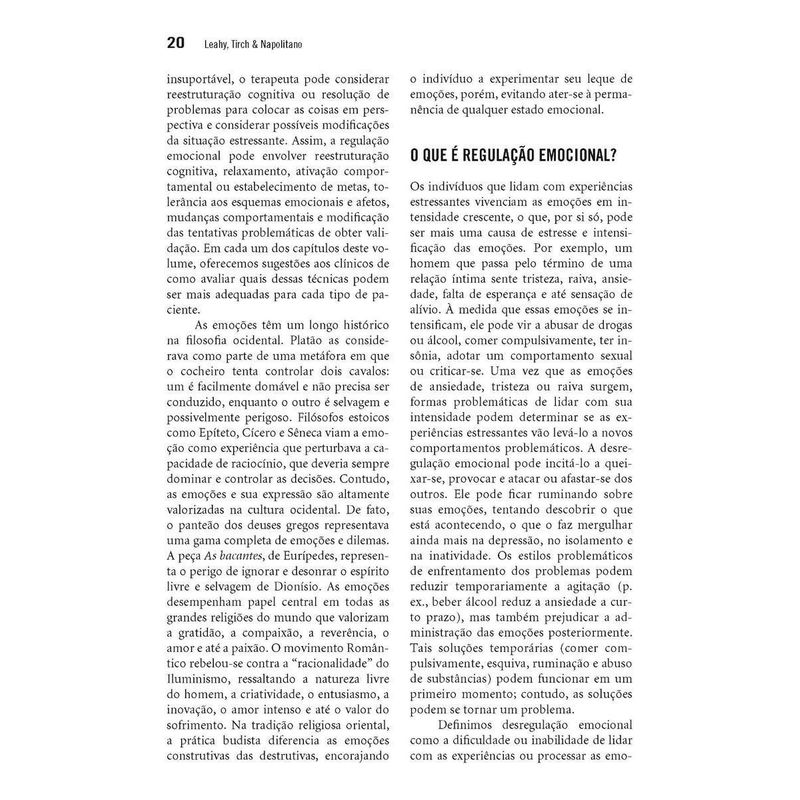Pratico e acessivel, este livro enfoca um tema extremamente relevante e pouco abordado nas obras sobre tecnicas psicoterapicas: o manejo das emocoes. Com seu conhecimento consistente e enorme experiencia clinica, Robert Leahy, ex-presidente da International Association of Cognitive Psychotherapy e diretor do American Institute for Cognitive Therapy, oferece ferramentas poderosas para os terapeutas ajudarem seus pacientes a lidar com experiencias emocionais temidas ou evitadas, independentemente de seu diagnostico.