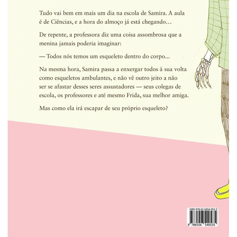 Descubra se Samira vai conseguir se livrar de seu esqueleto nesse divertidíssimo livro ilustrado. Quando a turma de Samira aprende sobre o corpo humano na aula de ciências, ela começa a imaginar todos na escola como esqueletos ambulantes. A garota então passa a evitar seus colegas de classe, até mesmo sua melhor amiga Frida, mas ainda assim não consegue escapar da visão do próprio esqueleto. Com a ajuda perspicaz de sua mãe, Samira percebe que ter um corpo cheio de ossos talvez não seja necessariamente uma coisa ruim. Com ilustrações criativas e texto ágil, esse livro da norueguesa Camilla Kuhn mostra até onde pode chegar uma imaginação desenfreada. Indicado para leitores a partir de 6 anos.