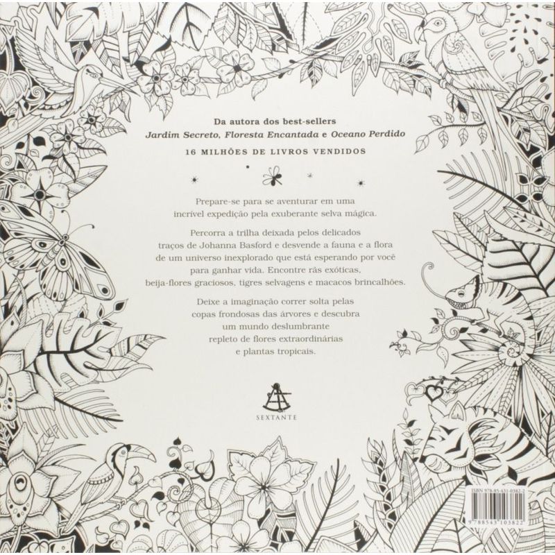 Da autora dos best-sellers Jardim Secreto, Floresta Encantada e Oceano Perdido, 16 milhões de livros vendidos. Prepare-se para se aventurar em uma incrível expedição pela exuberante selva mágica. Percorra a trilha deixada pelos delicados traços de Johanna Basford e desvende a fauna e a flora de um universo inexplorado que está esperando por você para ganhar vida. Encontre rãs exóticas, beija-flores graciosos, tigres selvagens e macacos brincalhões. Deixe a imaginação correr solta pelas copas frondosas das árvores e descubra um mundo deslumbrante repleto de flores extraordinárias e plantas tropicais.
