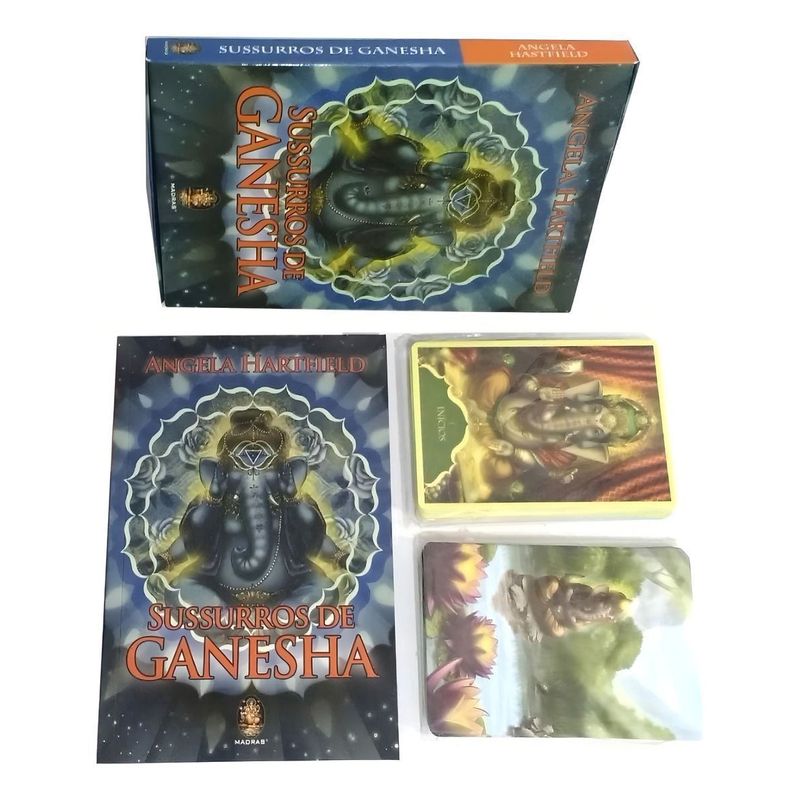 O Senhor Ganesha, famoso deus com a cabeça de elefante, é uma das divindades mais reverenciadas e cultuadas do panteão hindu. Sua energia tem o poder de remover obstáculos, conceder sabedoria e promover prosperidade e sucesso em todas as áreas. No Hinduísmo, praticamente todos os rituais começam com o culto a Ganesha. Sua imagem convoca o Universo, sua cabeça significa sabedoria e seu corpo é globular, evocando a Terra. Trabalhe com este oráculo exclusivo para invocar as bênçãos e a proteção de Ganesha, patrono das artes e das ciências e guardião do conhecimento supremo. Invoque-o sempre que precisar de inspiração, orientação e um caminho livre dos obstáculos e desafios que estão pela frente. Esta obra plena de magia, prosperidade e sabedoria é composta por um livro contendo as explicações de todas as 50 belas cartas que integram este magnífico trabalho.