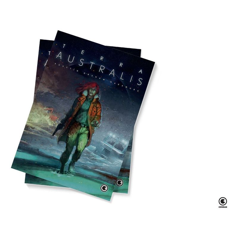 Dois detetives chegam a um povoado na Patagônia para dar assistência a um caso de assalto ao banco local. Ao interrogar o amnésico e único sobrevivente do sangrento episódio, imediatamente percebem que há algo errado: ele não lembra nem o próprio nome, desenha confusos símbolos e repete incessantemente: “Sul… Tenho que ir ao sul…”. A investigação os conduzirá aos confins do hemisfério sul, e até uma surpreendente revelação que guarda o próprio destino da raça humana. Terra Australis foi publicado pela Conrad em 2021 no formato de capítulos digitais, conquistando os leitores e agora chega em uma edição única encadernada impressa e digital, uma oportunidade para aqueles que além de conhecer a história, gostam de ter em sua coleção uma edição bem acabada. Terra Australis será preto e branco, terá orelhas com as capas internas coloridas, além de verniz localizado na capa, detalhes que tornam a edição um item indispensável a colecionadores.