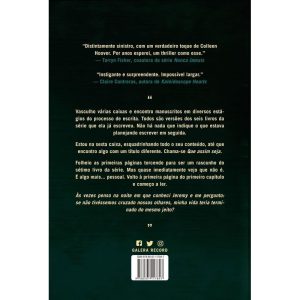 O amor é capaz de superar a pior das verdades?Verity Crawford é a autora best-seller por trás de uma série de sucesso. Ela está no auge de sua carreira, aclamada pela crítica e pelo público, no entanto, um súbito e terrível acidente acaba interrompendo suas atividades, deixando-a sem condições de concluir a história… E é nessa complexa circunstância que surge Lowen Ashleigh, uma escritora à beira da falência convidada a escrever, sob um pseudônimo, os três livros restantes da já consolidada série. Para que consiga entender melhor o processo criativo de Verity com relação aos livros publicados e, ainda, tentar descobrir seus possíveis planos para os próximos, Lowen decide passar alguns dias na casa dos Crawford, imersa no caótico escritório de Verity – e, lá, encontra uma espécie de autobiografia onde a escritora narra os fatos acontecidos desde o dia em que conhece Jeremy, seu marido, até os instantes imediatamente anteriores a seu acidente – incluindo sua perspectiva sobre as tragédias ocorridas às filhas do casal. Quanto mais o tempo passa, mais Lowen se percebe envolvida em uma confusa de mentiras e segredos, e, lentamente, adquire sua própria posição no jogo psicológico que rodeia aquela casa. Emocional e fisicamente atraída por Jeremy, ela precisa decidir: expor uma versão que nem ele conhece sobre a própria esposa ou manter o sigilo dos escritos de Verity? “Distintamente sinistro, com um verdadeiro toque de [Colleen] Hoover. Estive esperando um thriller como esse por anos.” – Tarryn Fisher, coautora da série Nunca Jamais
